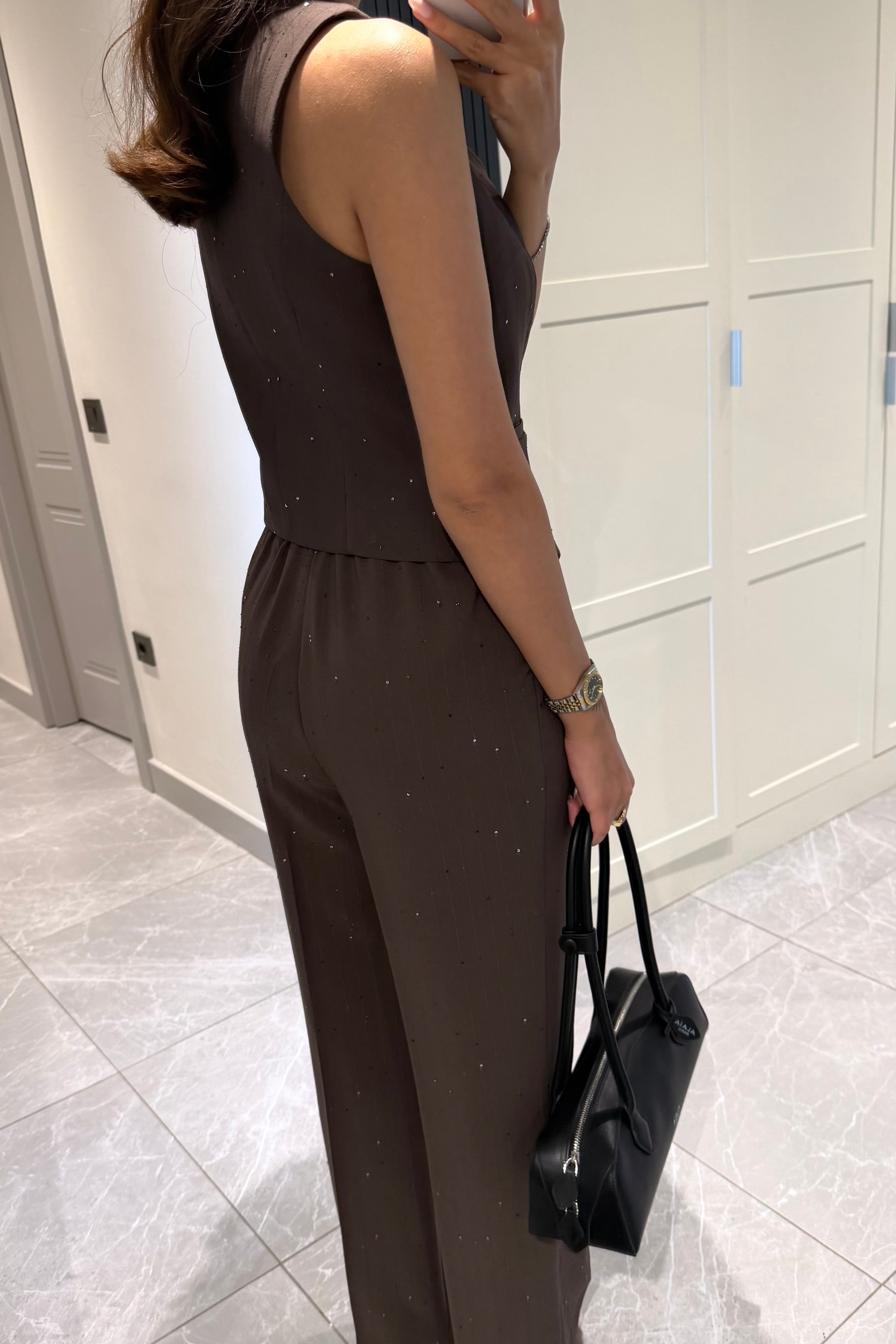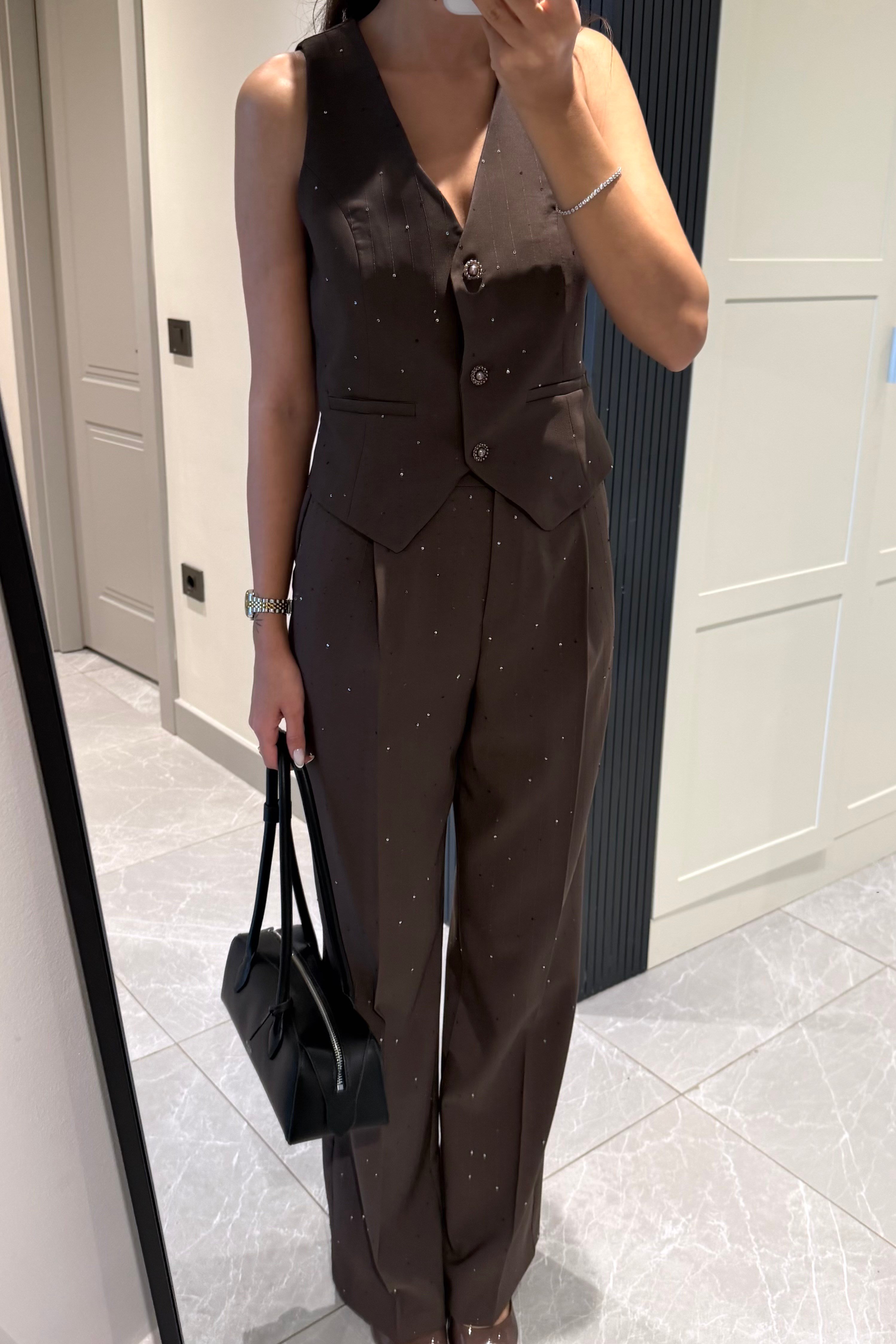 Acı Kahve Pullu Pantolon Yelek Takım (NZL11247)