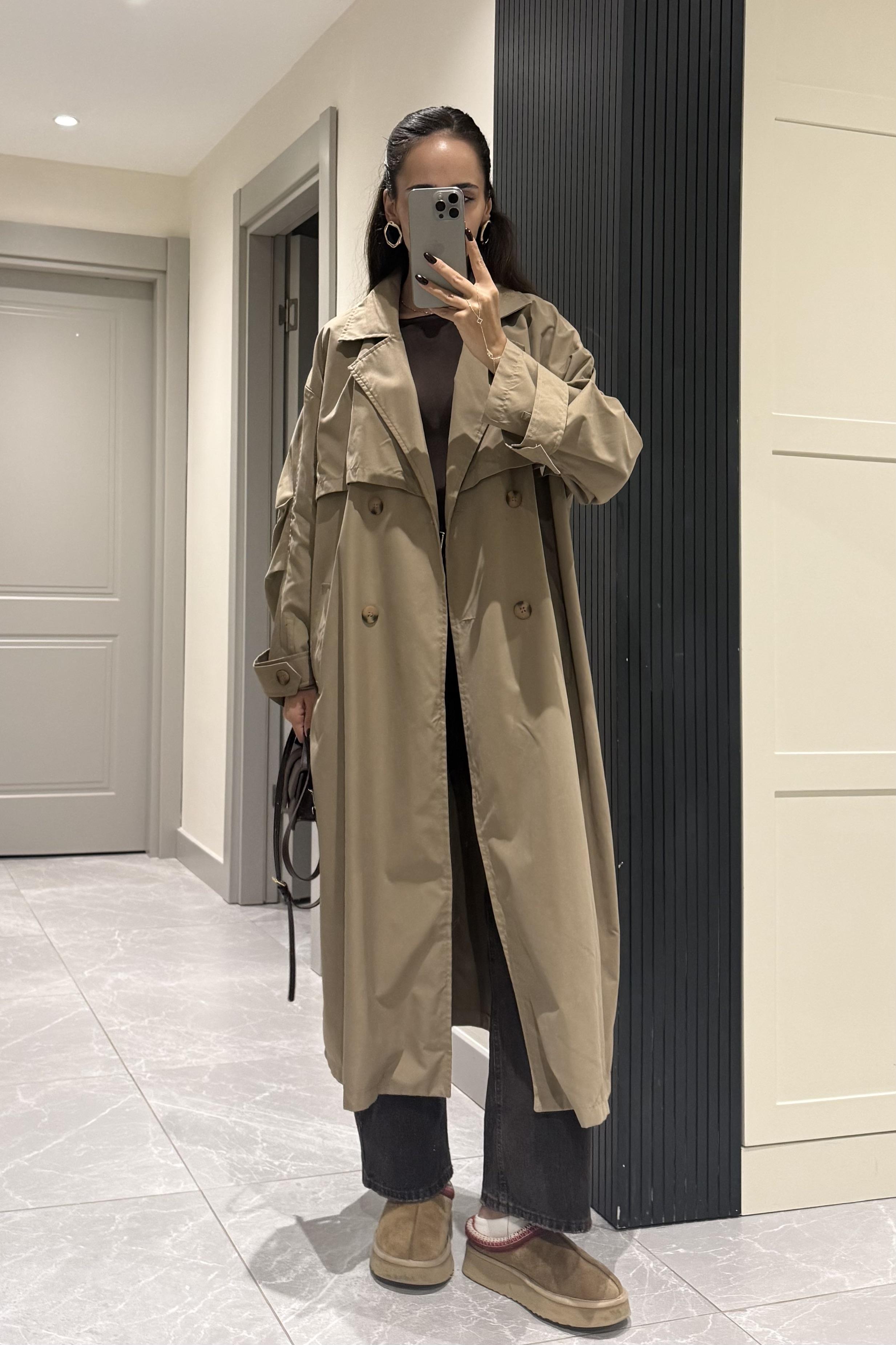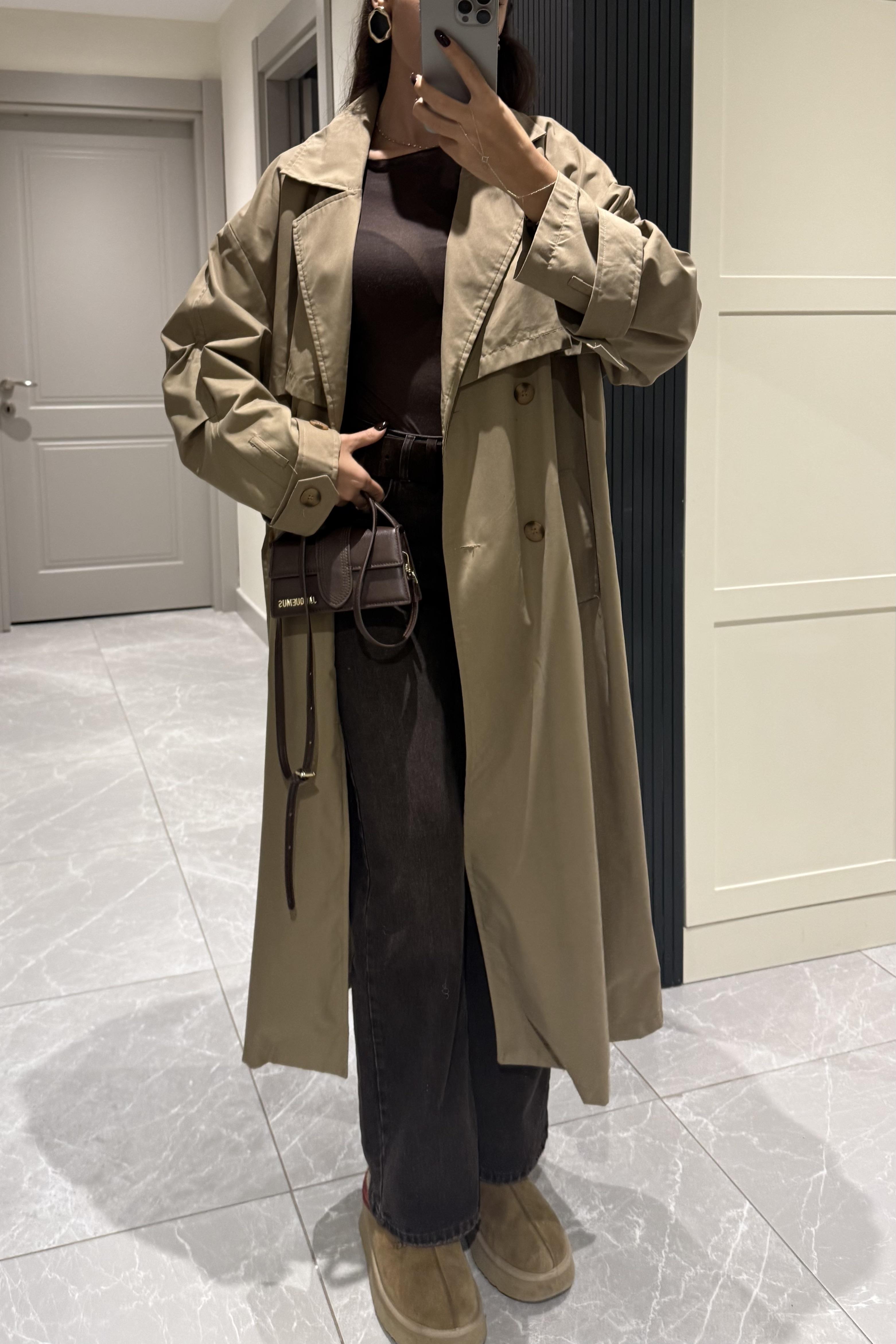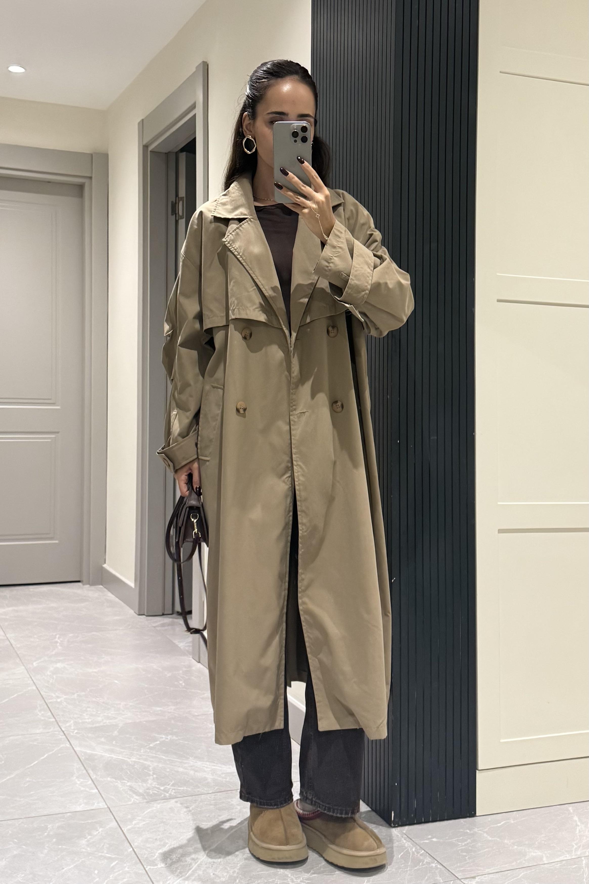 Camel Oversize Trençkot %100 Pamuk. Görsel Standart bendendir. Ürün boyu: 120 cm dir. Model Ölçüleri: Boy:172 cm Kilo: 52 kg Bel:60 cm Basen:90 cm.