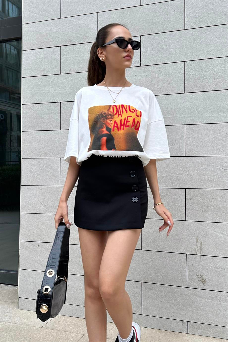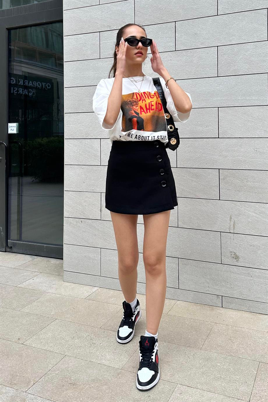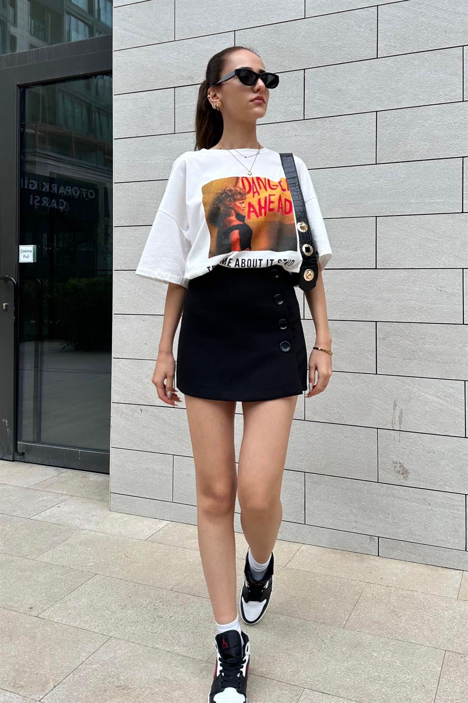 Black Buttoned Skort. %100 Cotton. The image is XS size. Modal Size: Height:172 cm Weight: 52 kg Waist:61 cm Hip: 90 cm.
