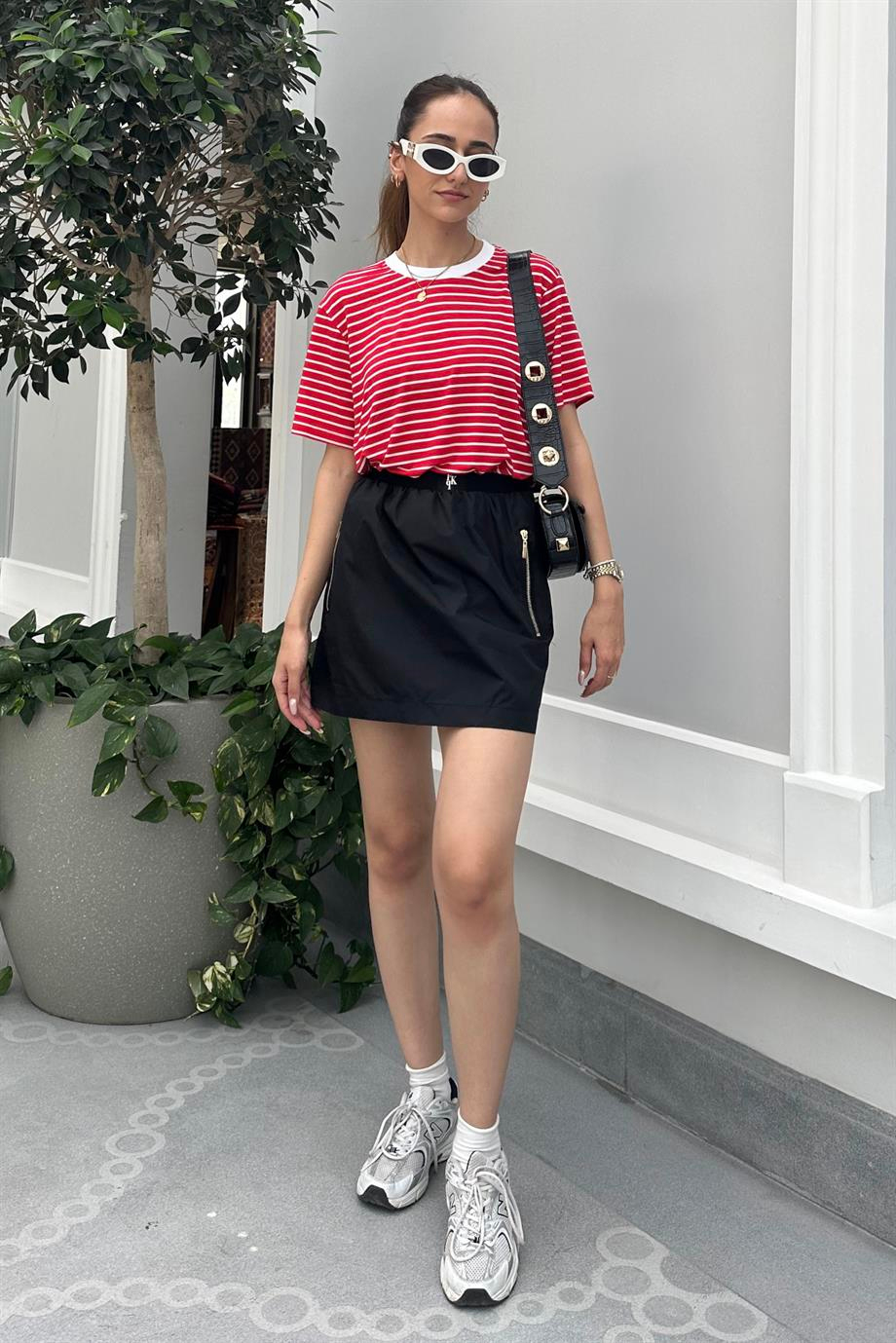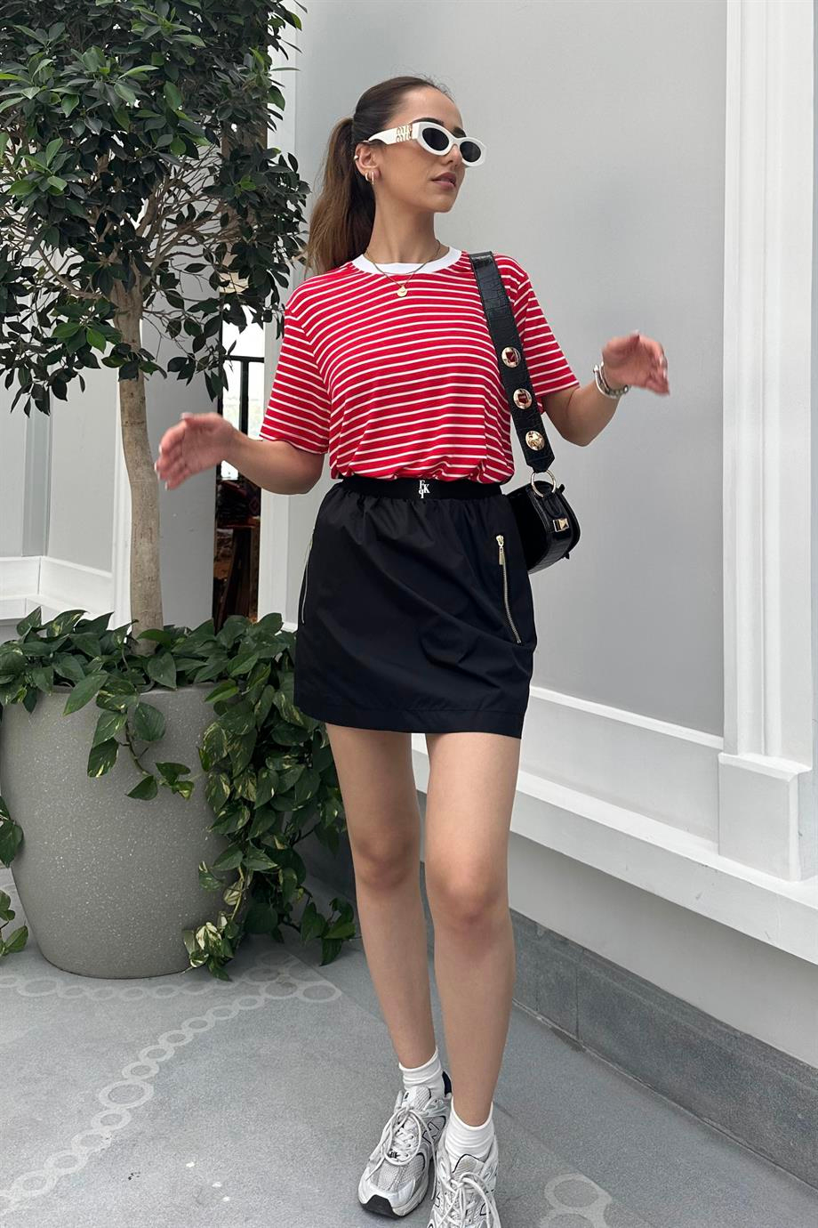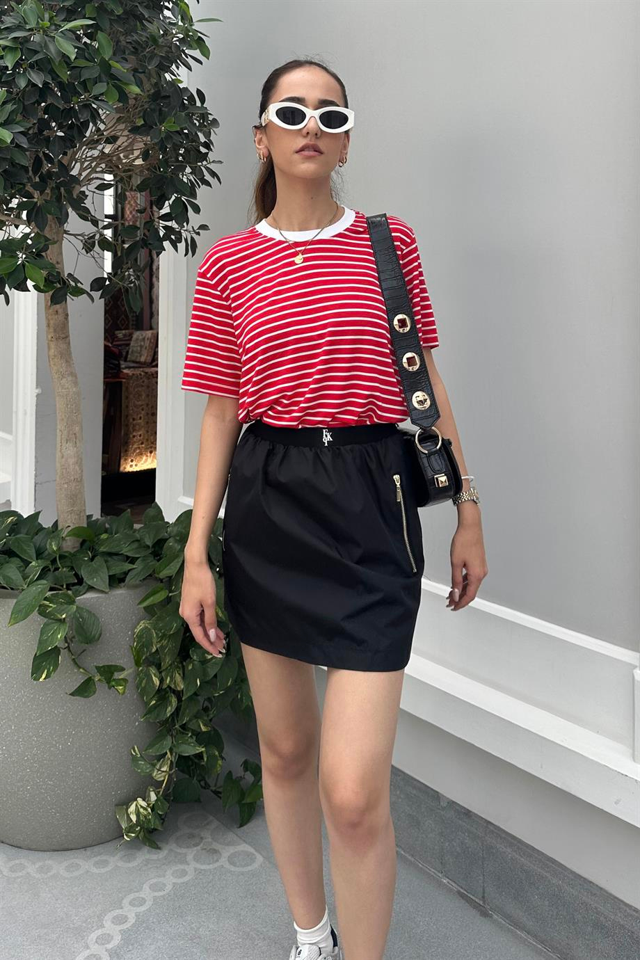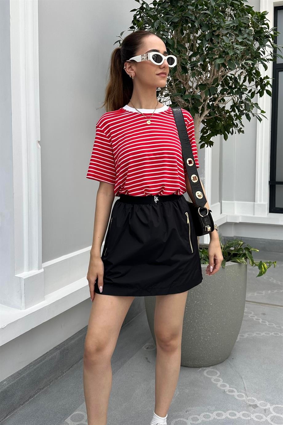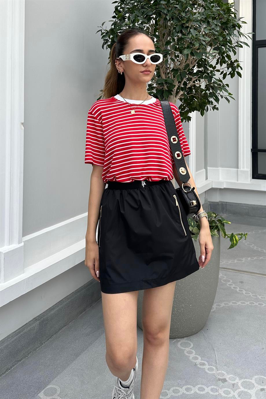 Black Parachute Mini Skirt. %100 Cotton. The image is S size. Modal Size: Height:172 cm Weight: 52 kg Waist:61 cm Hip: 90 cm.