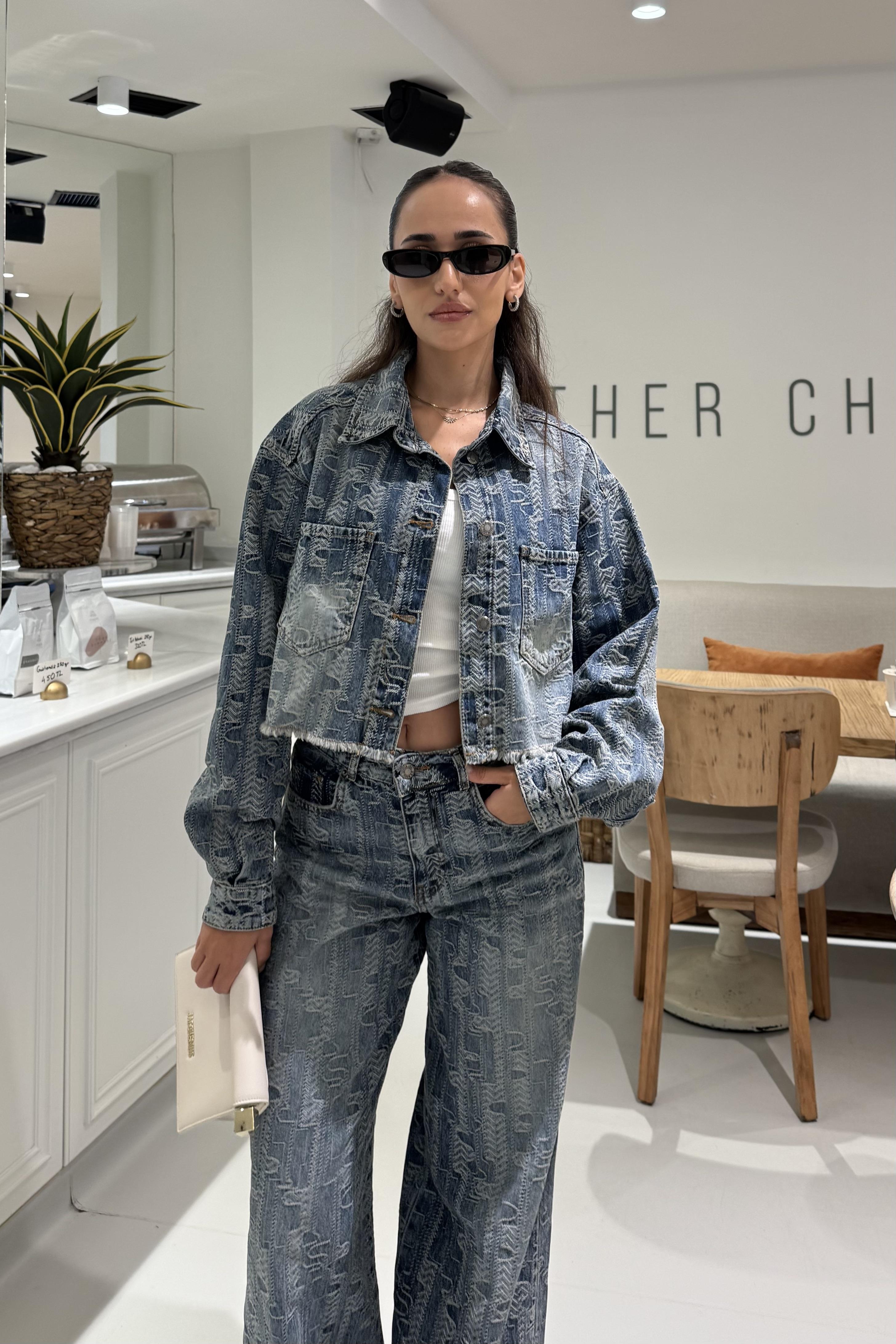 Desenli Denim Kumaş Premium Ceket (NZL11072)
