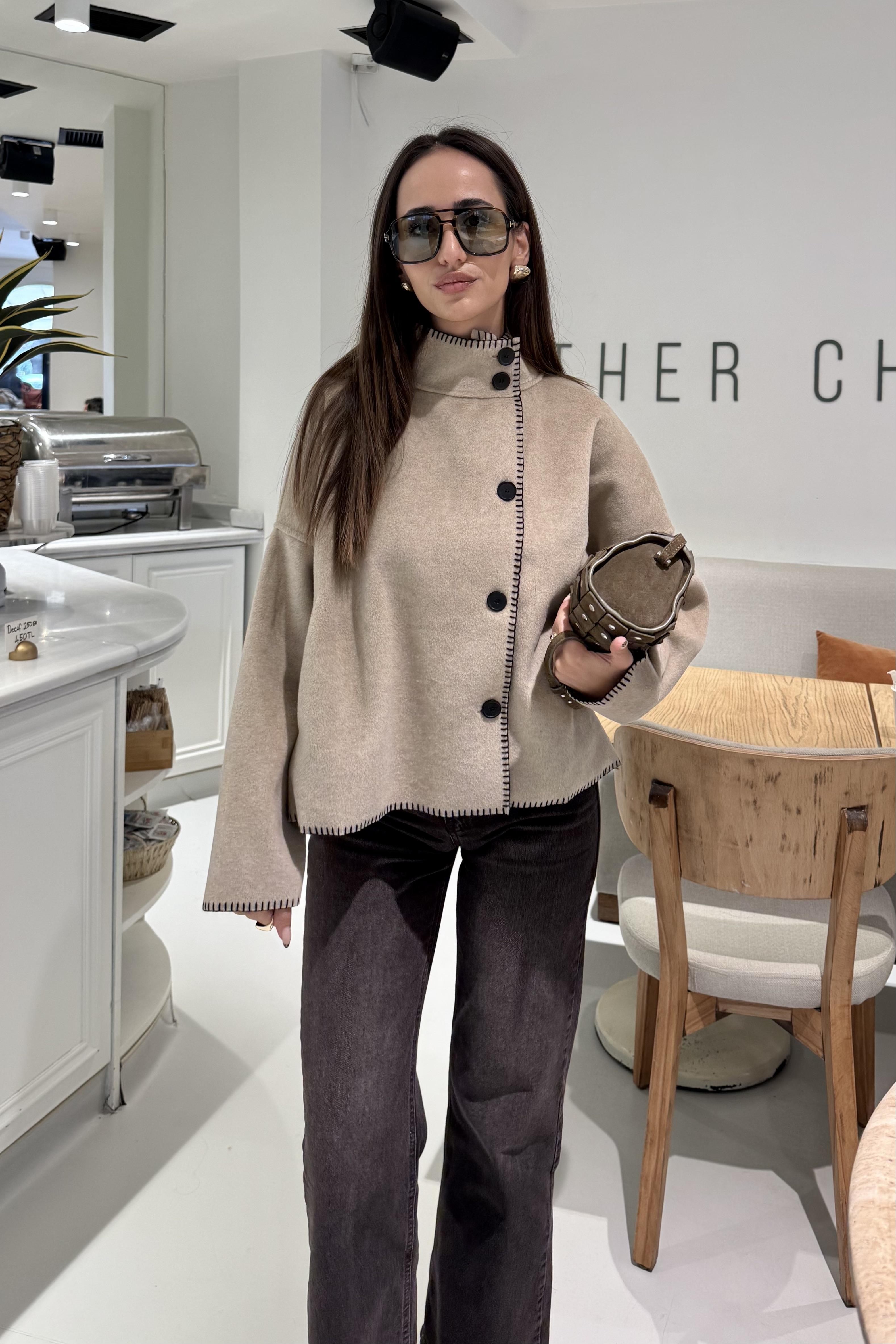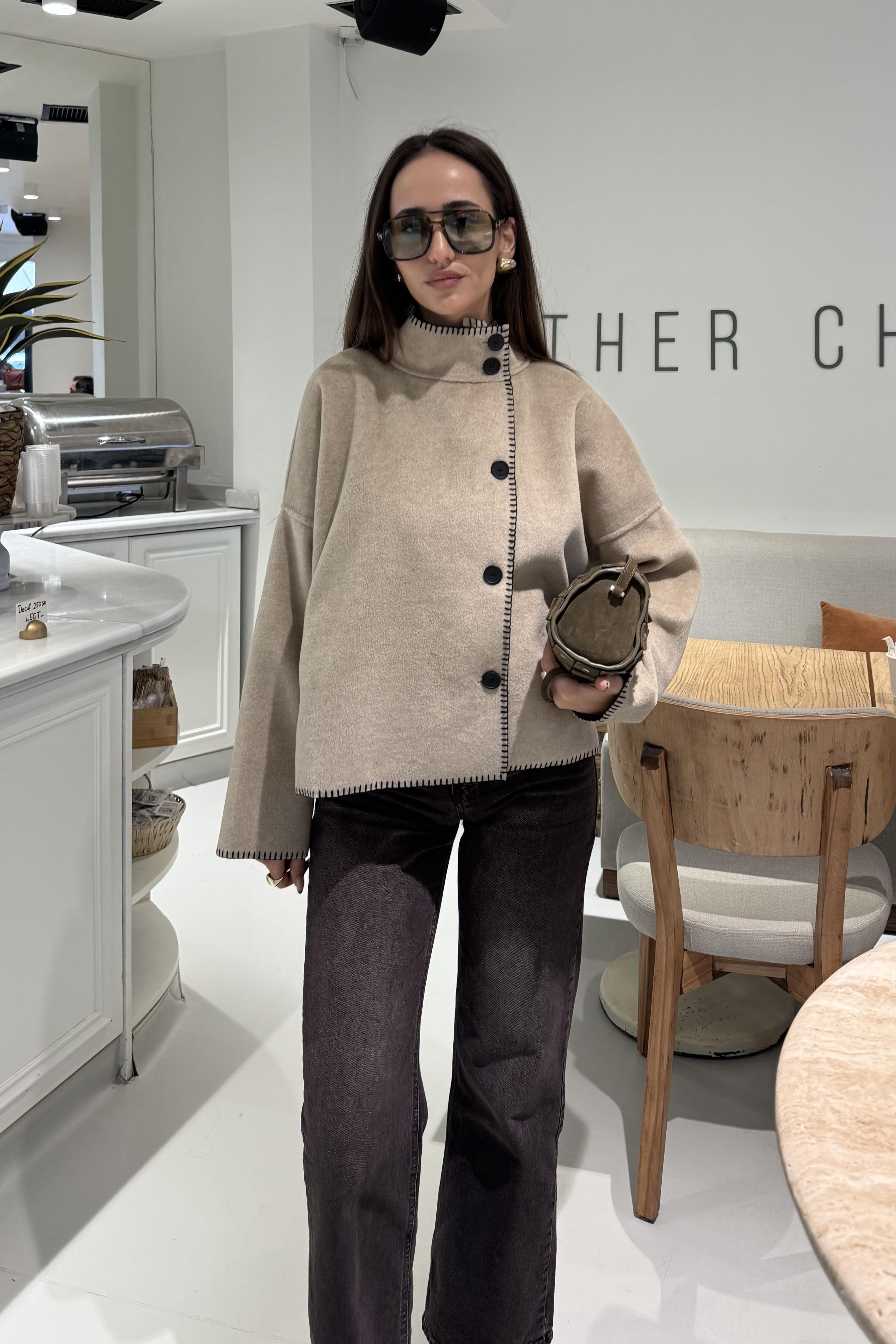 Ekru Çoban Dikişli Ceket (NZL11079)