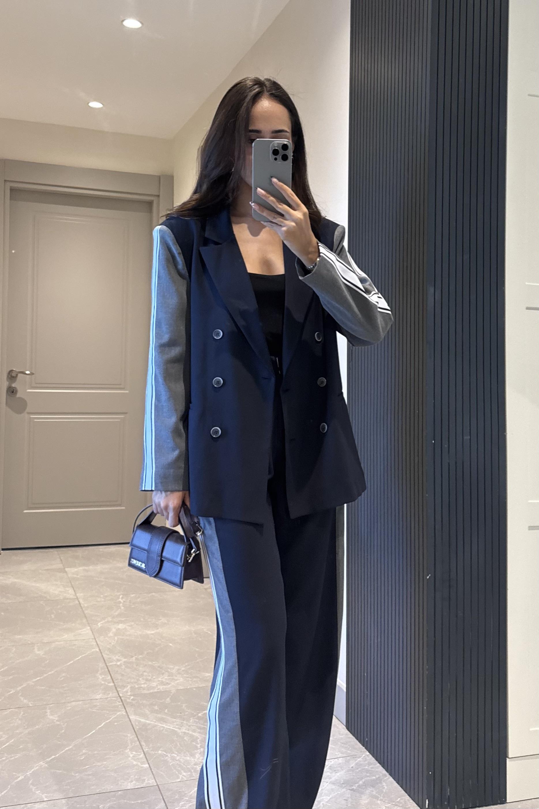 Lacivert Şerit Detay Tasarım Blazer Ceket (NZL11052)