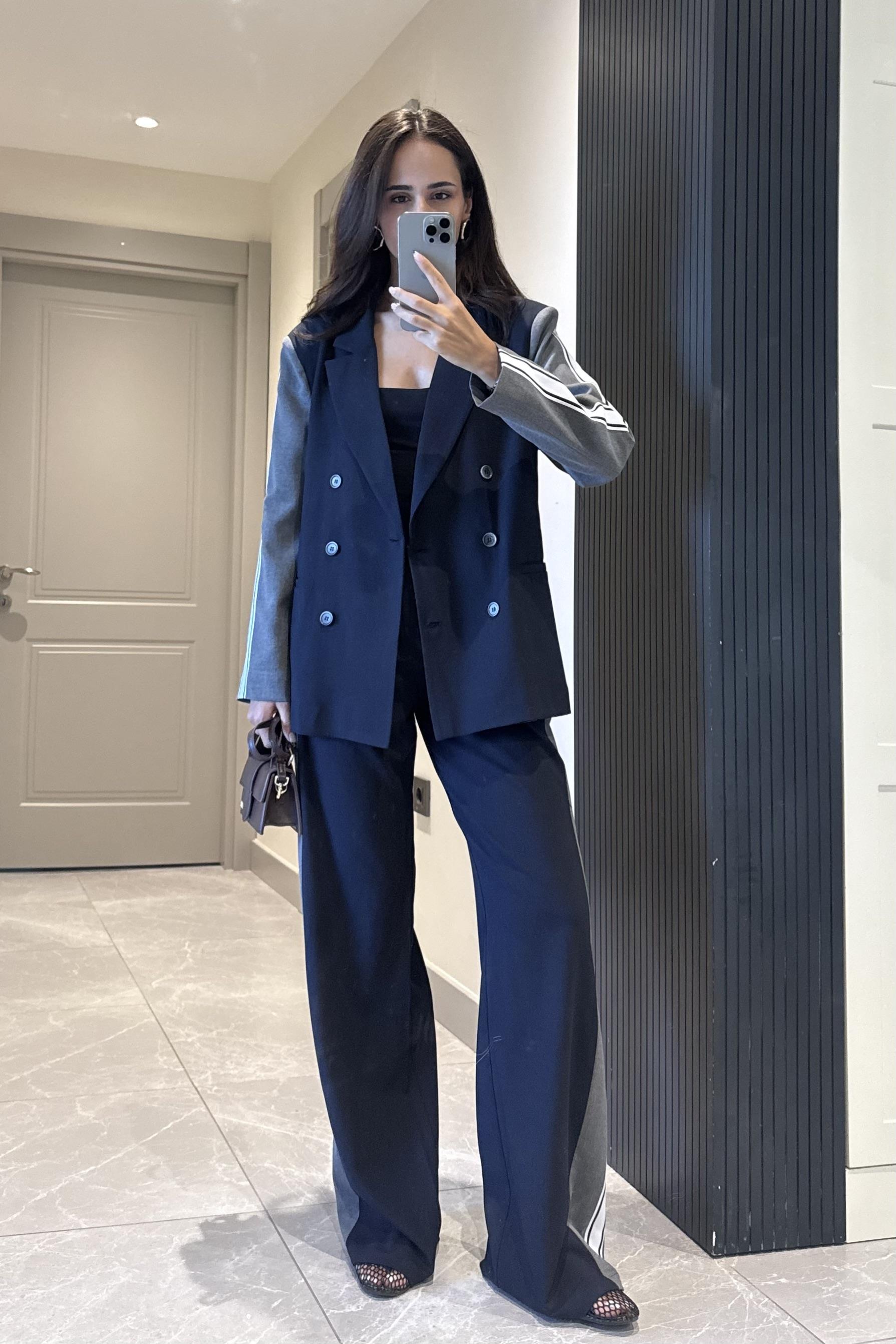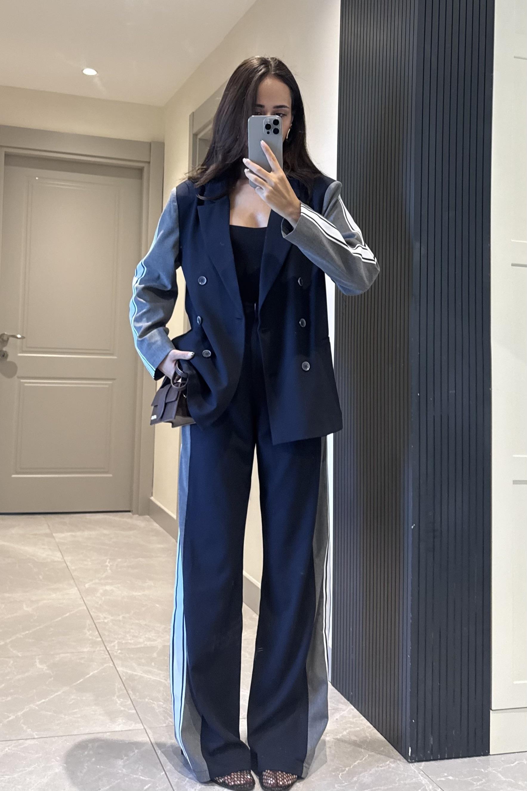 Lacivert Şerit Detay Tasarım Pantolon (NZL11053)