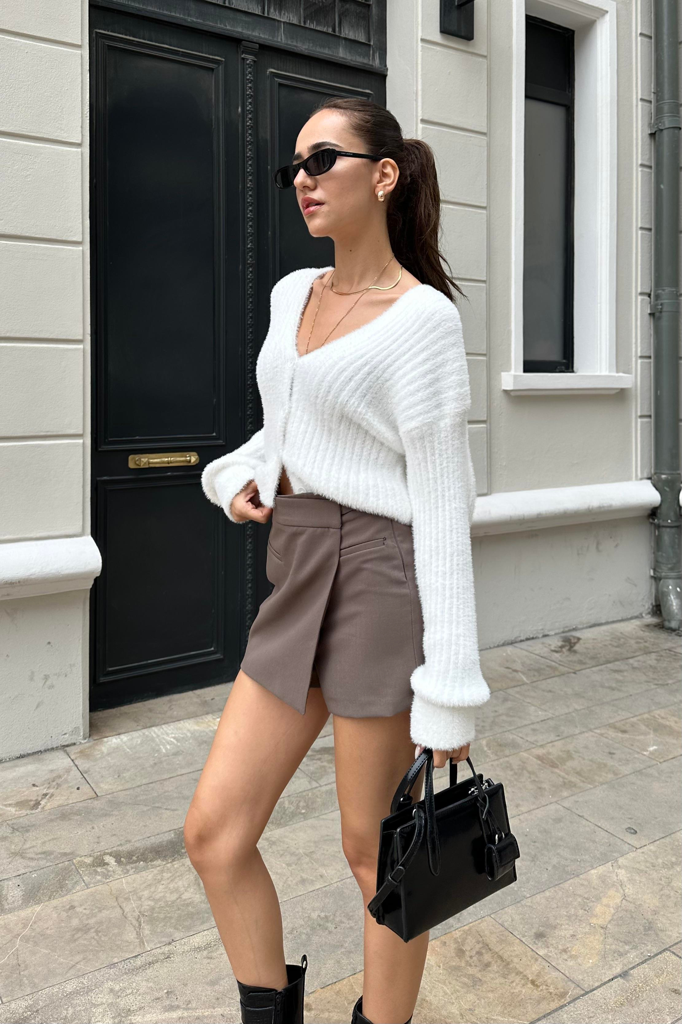 Mink Color Skort. %100 Cotton. The image is XS size. Modal Size: Height:172 cm Weight: 52 kg Waist: 61 cm Hip: 90 cm.