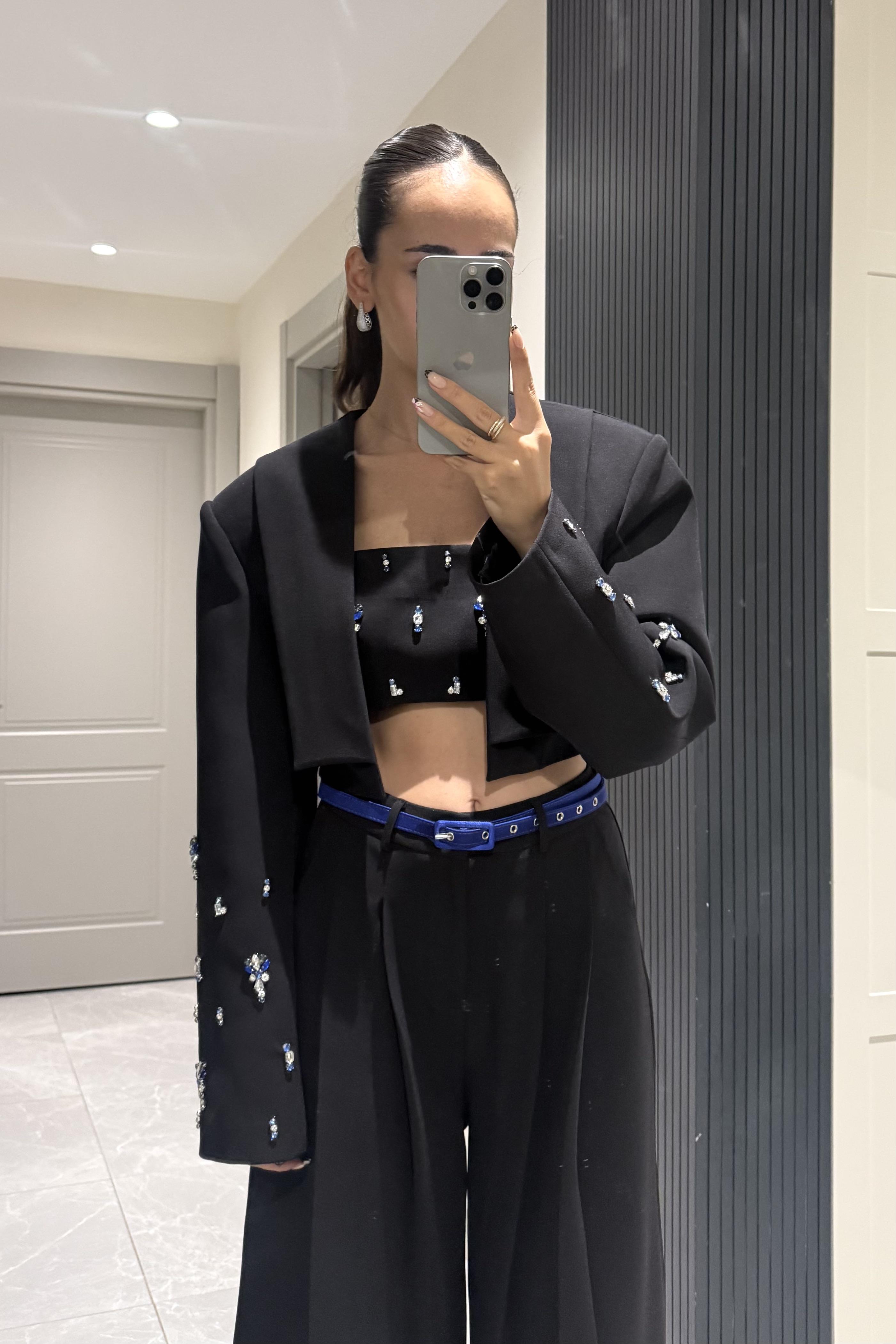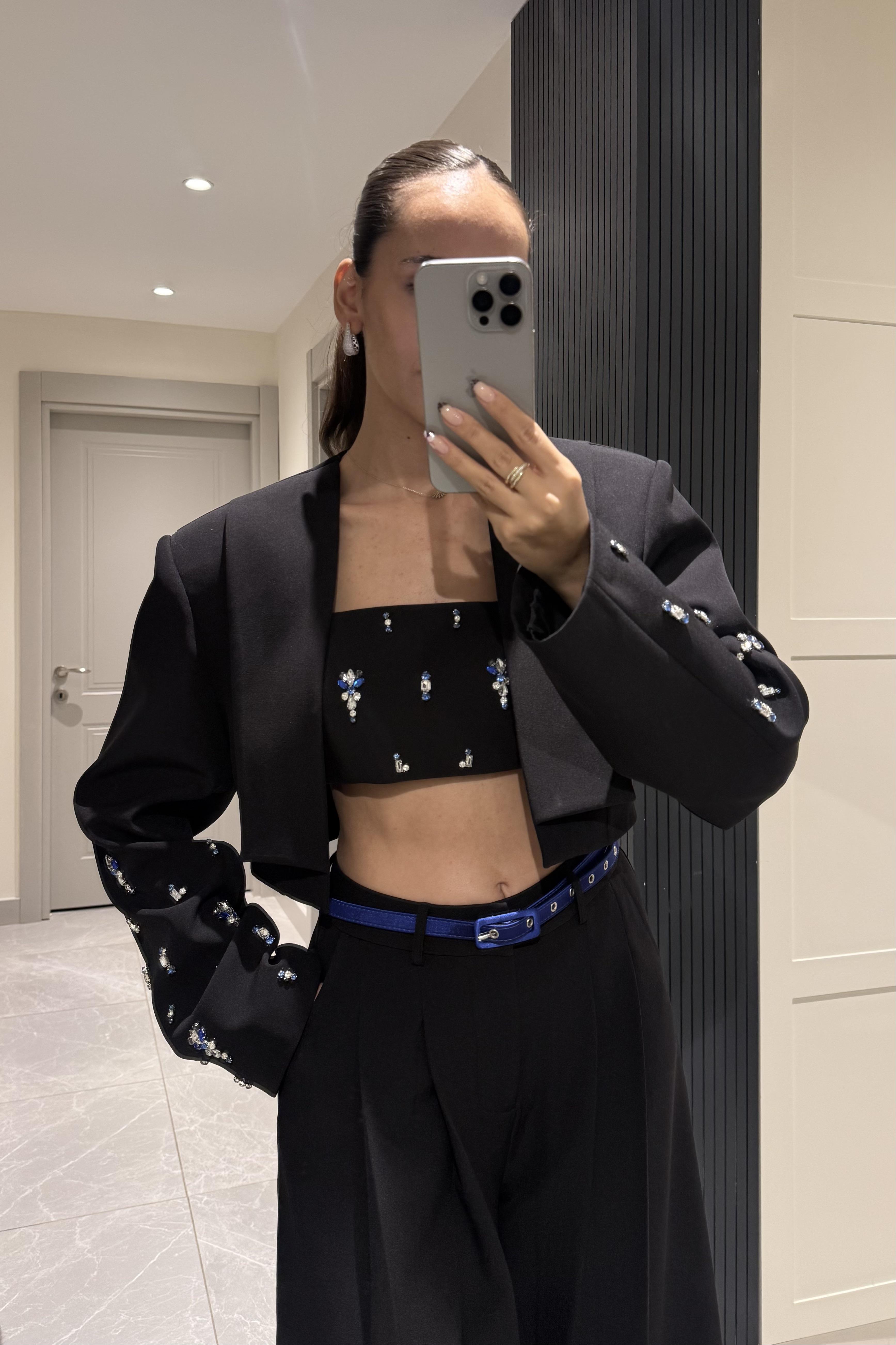 Siyah Taş İşleme Premium Büstiyer (NZL11046)