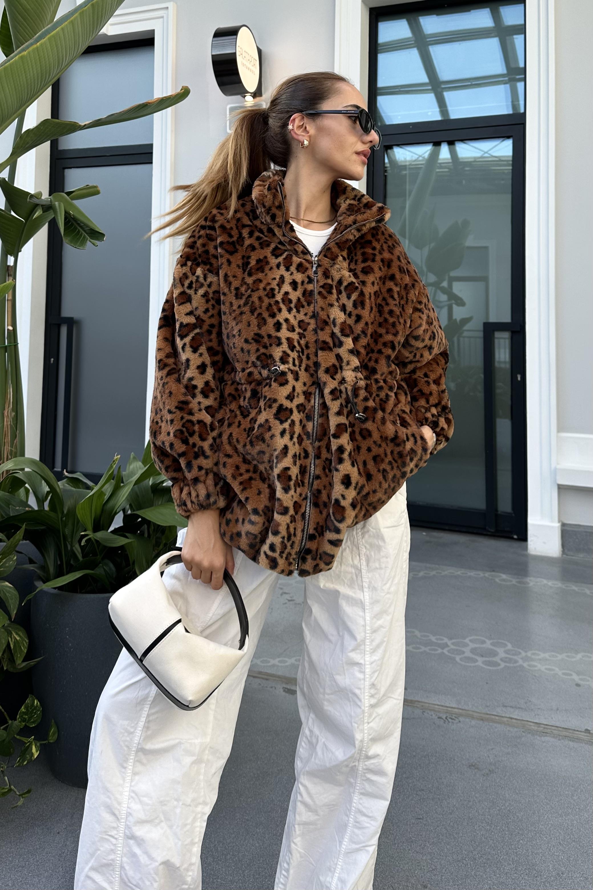 Kahve Leopar Premium Peluş Mont (NZL10436)