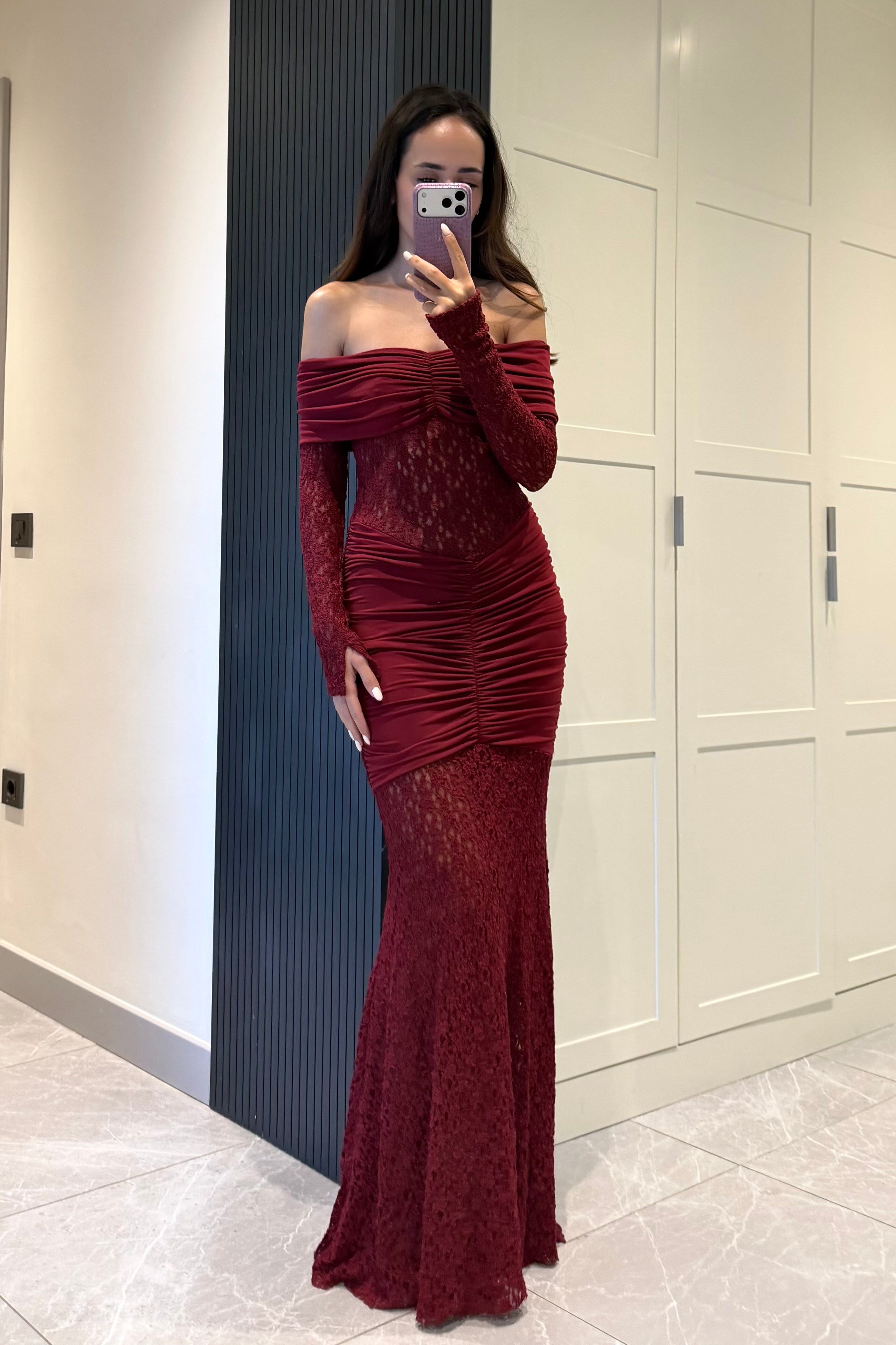 Kırmızı Madonna Dantelli Uzun Elbise. %90 Polyamid %10 Elastan. Görsel S bedendir. Model Ölçüleri: Boy:1,72 cm Kilo:52 kg Bel:60 cm Basen:90 cm.