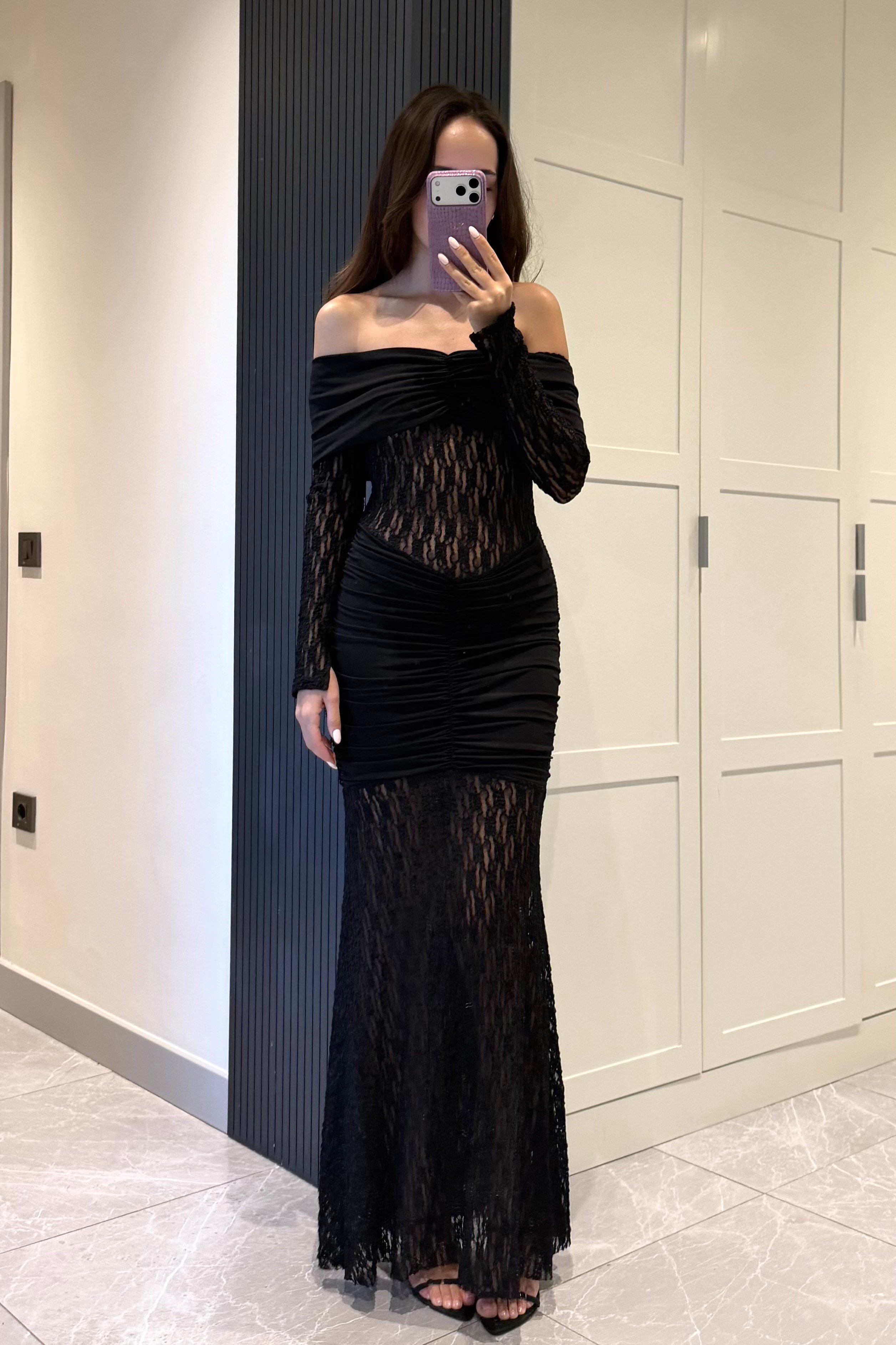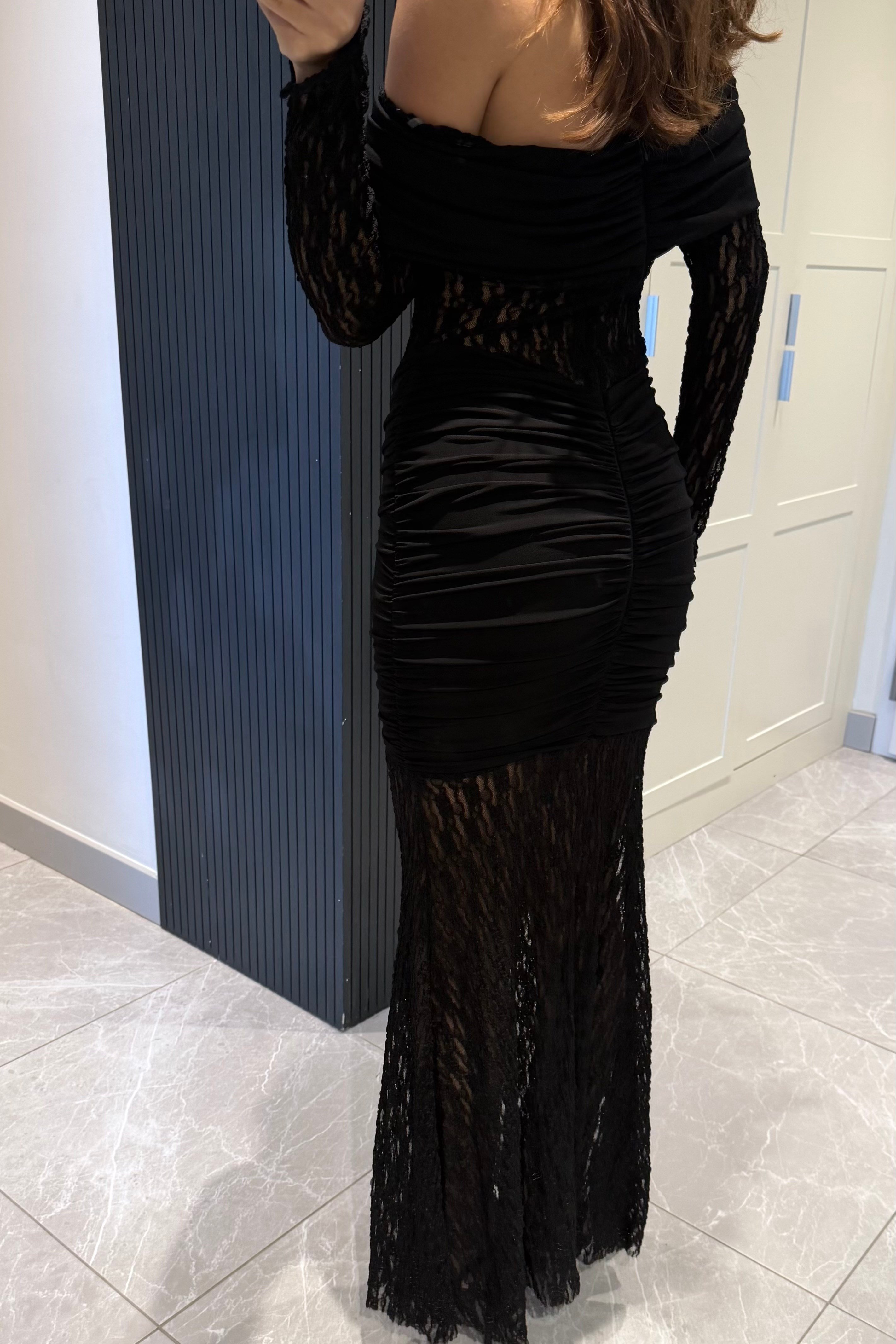Siyah Madonna Dantelli Uzun Elbise (NZL11244)